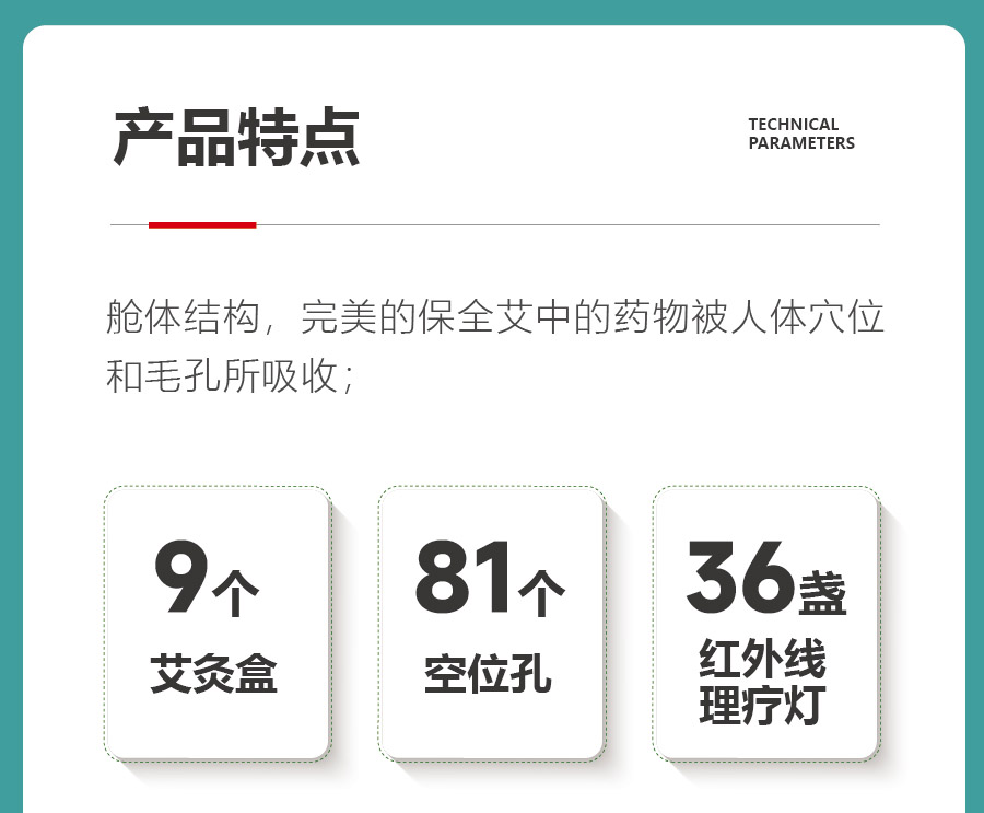 9個艾灸盒,81個穴位孔,36盞紅外線理療燈;